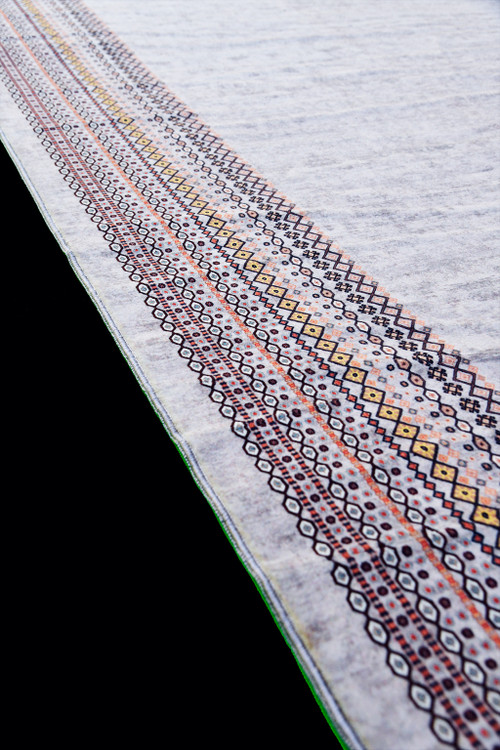 زمینه طوسی ملایم یکی از پرطرفدارترین رنگها در دکوراسیون امروزی است. این رنگ خنثی به راحتی با سایر رنگها هماهنگ میشود و فضایی آرام، شیک و هماهنگ به وجود میآورد. حاشیه سنتی نیز با رنگهای ظریفتر تکمیل شده تا زیبایی و اصالت بیشتری به کار ببخشد.